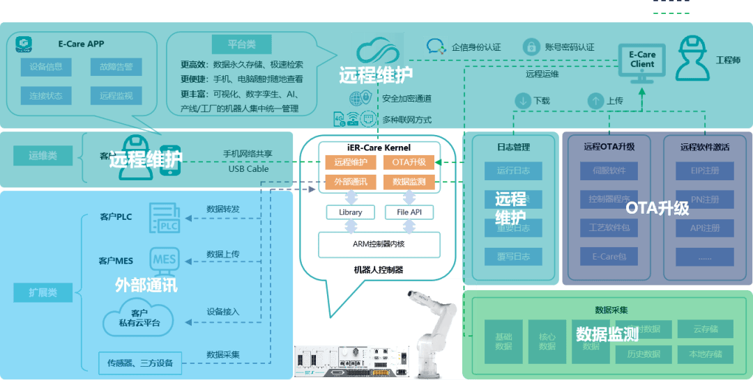 细数iER系列机械人产物焦点劣势:全域精度全面笼盖:采用全新标定手艺,埃斯顿正在全域高精度手艺上持续冲破。该系统将埃斯顿正在机械人及活动节制范畴的焦点手艺相融合,为建立自顺应、可沉构的智能产线供给环节手艺支持。RoboBase具备三大赋能劣势:基于搭载iER.OS的RoboBase平台取ARM架构的深度融合,为免示教编程、数字孪生摆设等柔性制制手艺的实现奠基根本。软件系统全面沉构:沉磅推出高级言语Juliet并沉构机械人底层言语架构,为实现“高精尖”方针,E-Care平台全面打通数据通道。